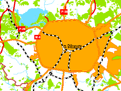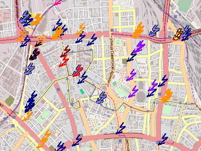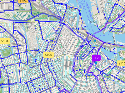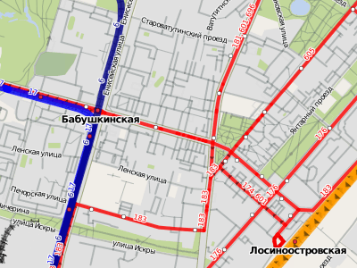 Карта с большим количеством накладываемых слоёв с различной информацией (общественный транспорт, заправки, питание, туризм и т.д.).