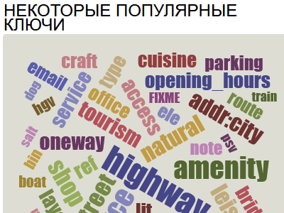 OpenStreetMap использует теги в виде ключ=значение для описания географических объектов. Taginfo собирает информацию об этих тегах из нескольких источников, чтобы помочь вам разобраться, что каждый тег означает и как применяется.